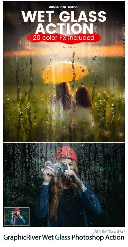 Wet Glass Photoshop Action to create a wet glass effect on images along with a video tutorial from River Graphics | 43.4 MB | ATN & PNG & JPG format